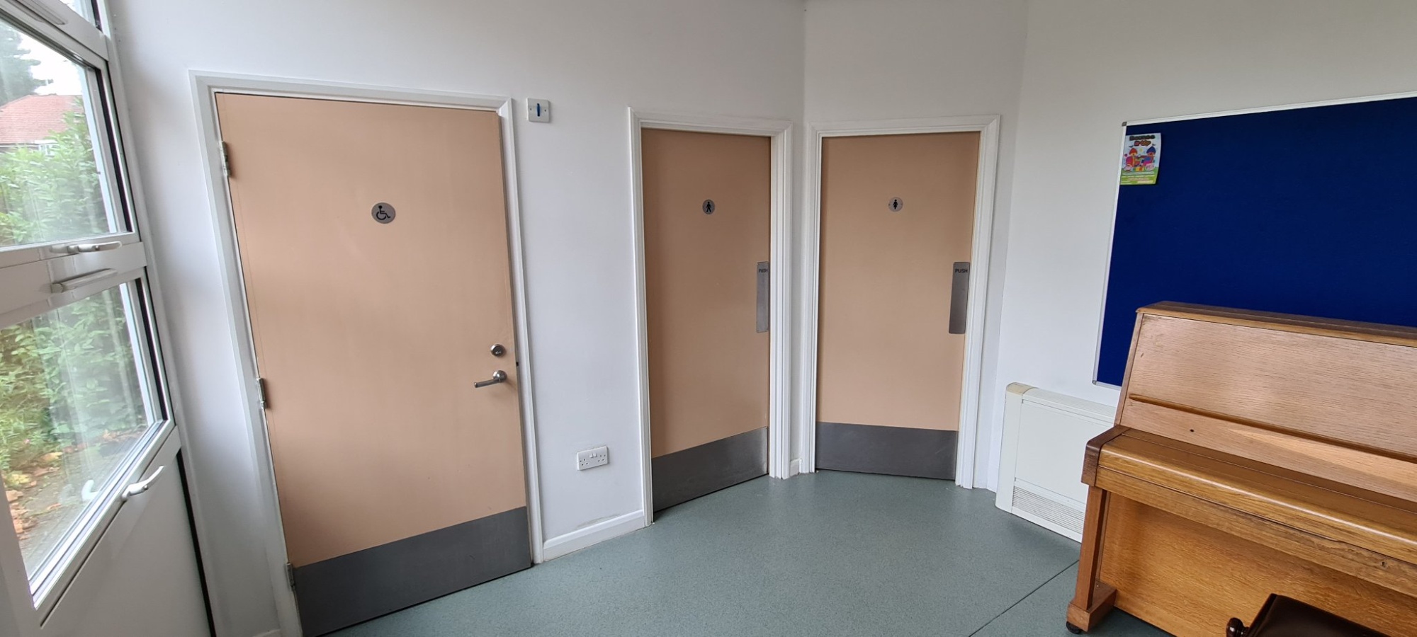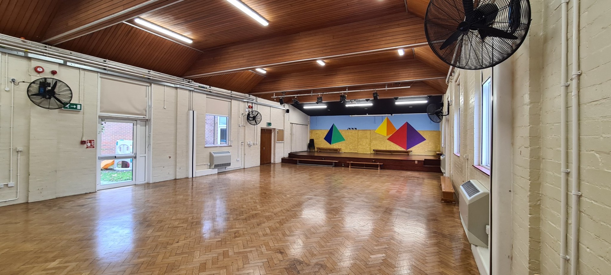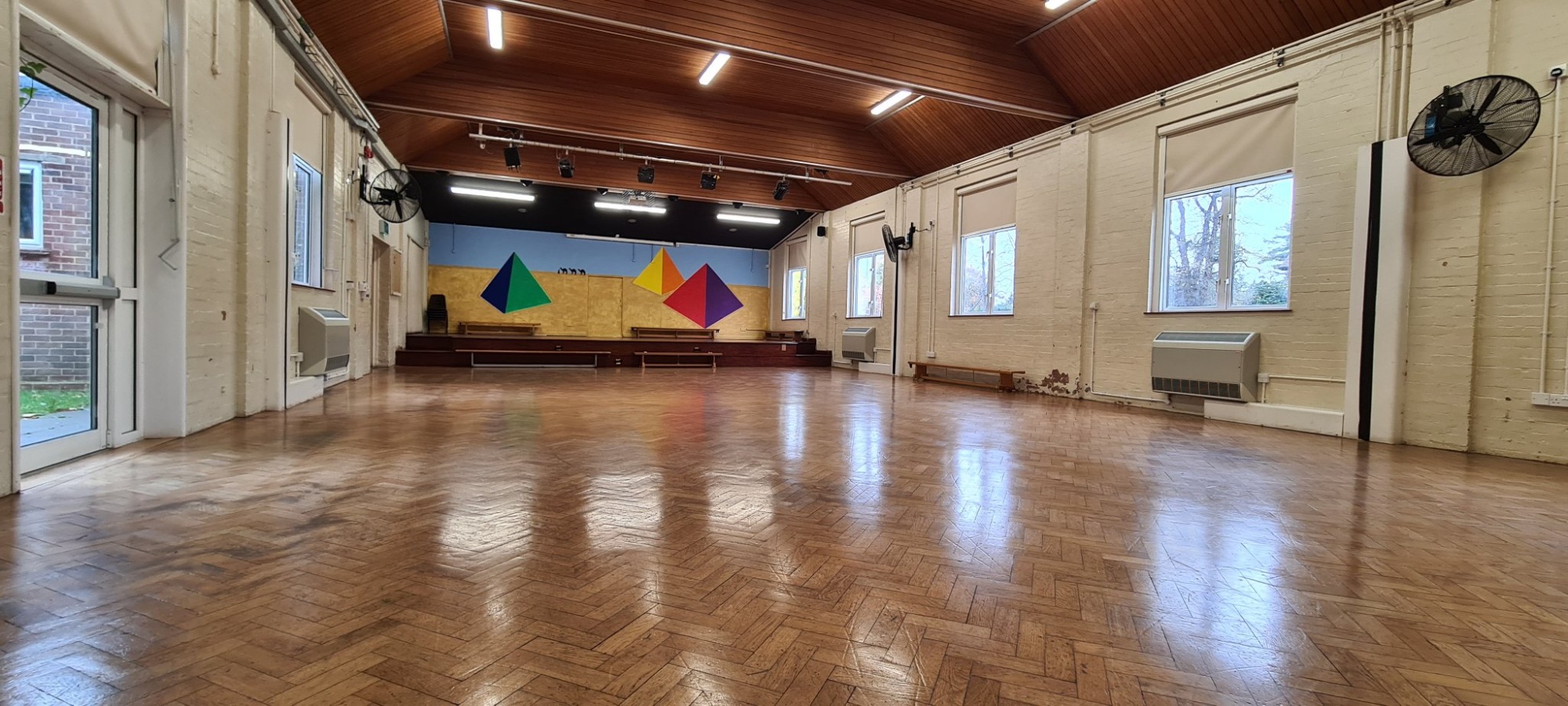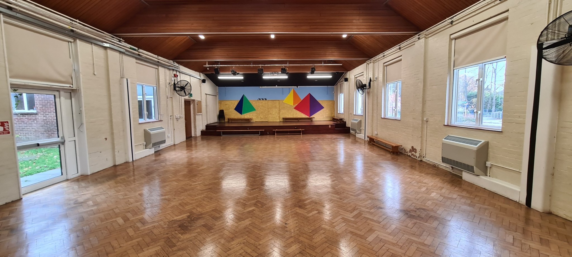 The hall is in a self-contained building on the grounds of Nascot Wood Junior School, and has toilets and a kitchen with an access hatch that is included in the price.